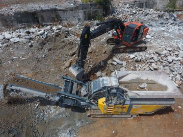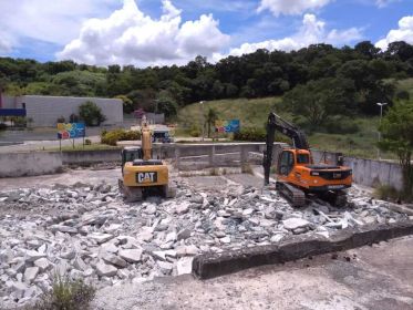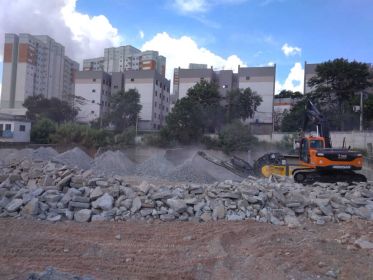 Demolição de Usina de concreto; Demolição de 7.496m² de piso, britagem e reciclagem de 4.800m³ de concreto, transformando-os em pedriscos para reutilização na própria obra. Compactação de 8.900m³ de terra e nivelamento do terreno.