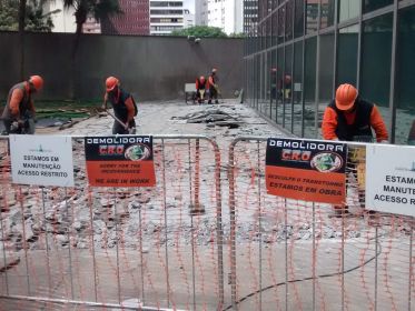Demolição Retrofit; Demolição de laje sobre laje, demolição de contra piso de toda área da esplanada torre Norte e Sul do Edifício Cetenco Plaza, Av. Paulista - SP e remoção dos entulhos provenientes para aterro legalizado.